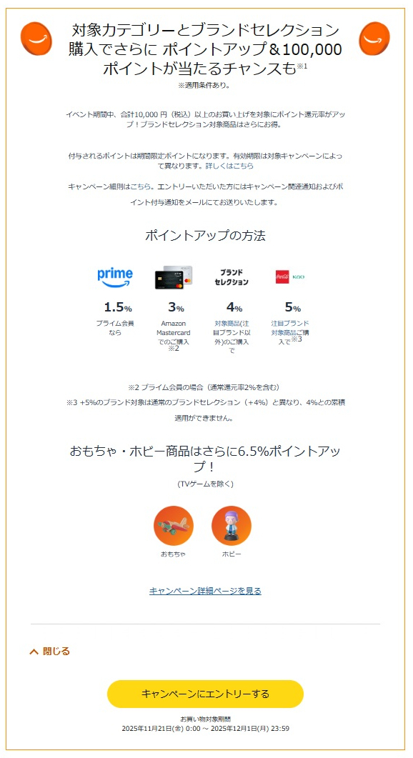 オススメのガジェットを紹介する前に、Amazonブラックフライデーと同時に開催されているポイントアップキャンペーンの参加方法について解説します。