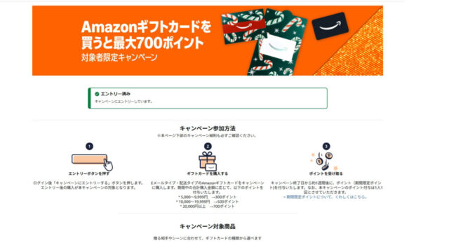ちなみに、Amazonギフトカード チャージタイプは”対象外”なので注意してください。