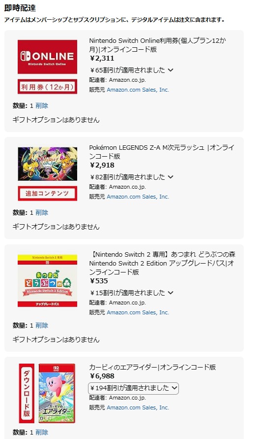 購入方法は簡単で、Switchのオンラインコードとダウンロード版のゲームを同じカートに入れて決済すれば自動で反映されます。