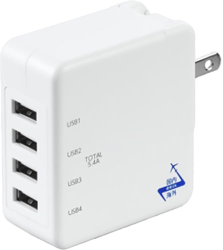 このUSB充電器はUSBポートが4つ付いていて、最大出力5.4Aと同価格帯の他社製品と比較して高出力な点が魅力的です。