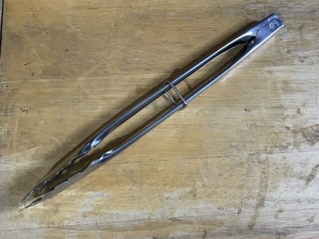 また、トングにはロック機構が搭載されていて、下画像のトングのようにストッパーがズリ落ちてこなくて、かなり使いやすいです。