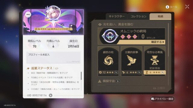ちなみに、筆者は崩壊スターレイルにガッツリハマっていて、開拓レベルはMaxの70に到達。