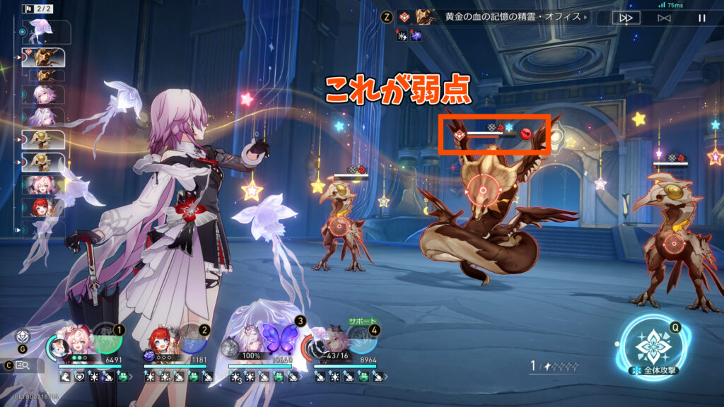 弱点撃破状態にすると、敵の被ダメージが増加し、行動を遅延させることが可能です。