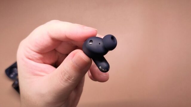 ディスプレイが搭載されている分、一般的なワイヤレスイヤホンと比較するとやや大きめな印象。