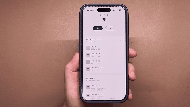 つまり、「左を1回タップで再生/停止」「右を2回タップで曲送り」といった 細かいカスタマイズができないため、どうしても自由度が低く感じてしまいます。