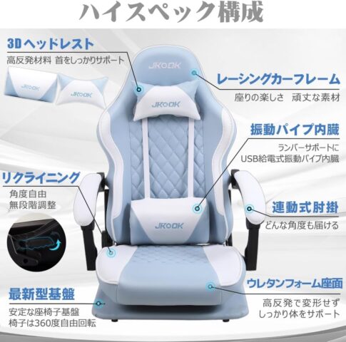 JKOOKのゲーミングチェアについての紹介は以上になります。