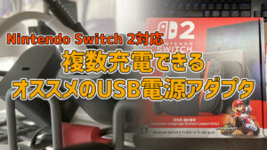 例えば、旅先でSwitch 2とスマホを充電したいって時に、Switch 2純正の充電アダプタだとポートが1つしかないので不便に感じるでしょう。