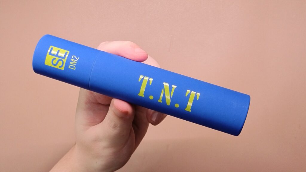 製品は名前の“TNT”を連想させるような、筒状の爆弾を思わせるケースに収められていて、開封した瞬間からちょっとワクワクするデザインになっています。